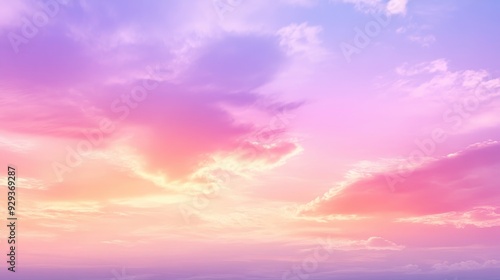 A serene sunset sky with soft pink and purple hues blending into the clouds.