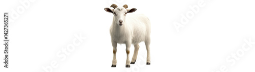 A serene white goat standing in a grassy field.