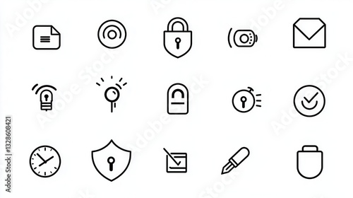 A set of 15 unique security and privacy themed icons with clean outline designs covering various aspects of data protection access control and digital safety