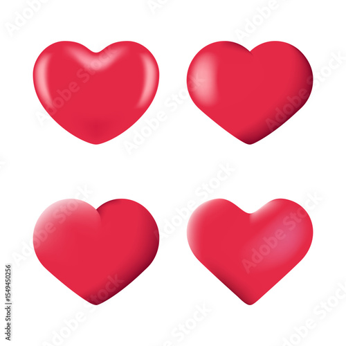 A set of 3D glossy red heart illustrations with smooth gradients and realistic lighting effects. Perfect for romantic messages and greeting cards. Isolated on a white background for easy use.