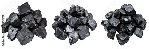 A Set of Authentic Raw Coal Rocks Stacked for Energy Production Isolated on Transparent Background