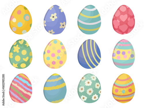 easter, easter egg, colourful, patterned, decorative, clip art, spring, holiday, celebration, set, collection, design element, graphic, background, template, card, greeting card, poster, banner, striped, wavy, floral, heart, star, cute, cartoon, isolated, modern, bright, pastel, vibrant, yellow, blue, green, pink, purple, children, children, joyful, unique, creative, invitation, party, decor, festival, cheerful, flower, different