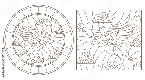 A set of contour images of flying pigs in the sky, round and square image