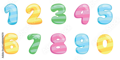 A set of cute numbers from 0 to 9 in a children's pastel bright design. Elements for the design of greetings