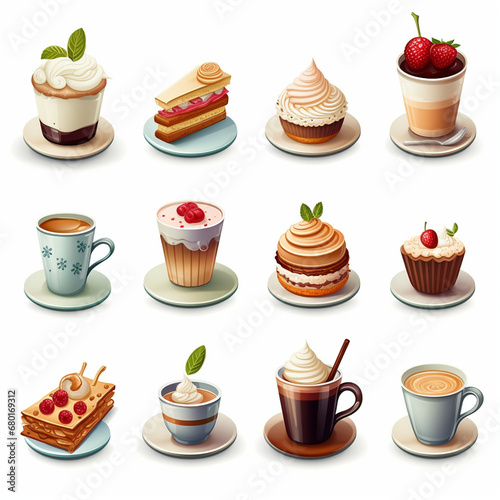 a set of detailed icons representing a variety of food and beverage items, from gourmet coffee to delectable pastries created with Generative Ai