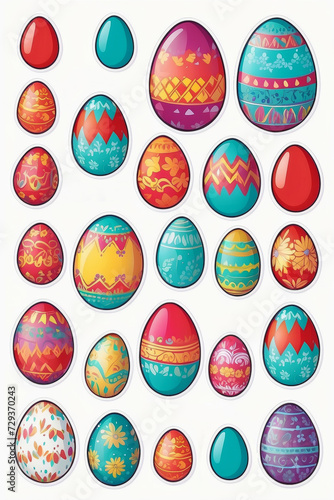 A set of Easter egg stickers. Beautiful, painted, colored. Isolated on a white background.