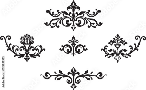 pattern, ornament, vector, design, floral, decoration, frame, flower, vintage, art, illustration, element, set, wallpaper, decor, border, swirl, snowflake, ornate, seamless, tattoo, style, silhouette