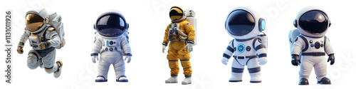 A Set of Futuristic Cartoon Astronauts in Stylish Spacesuits Isolated on Transparent Background