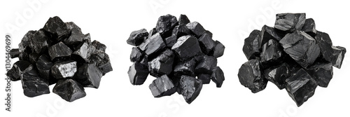 A Set of Natural Fossil Fuel Coal Pieces Perfectly Stacked Isolated on Transparent Background
