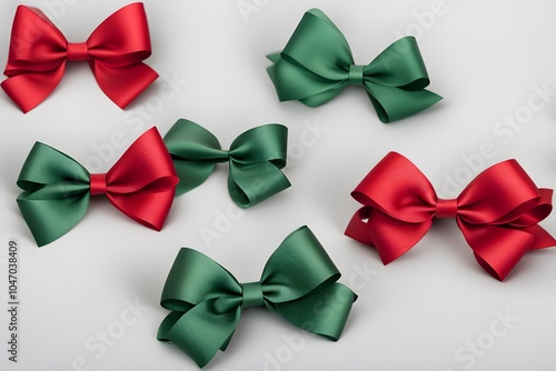 A set of red and green bows perfect for decorating Christmas presents, Ai Generated