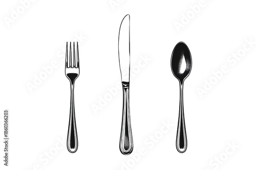 silverware, cutlery, fork, knife, spoon, metal, shiny, utensil, tableware, dining, eating, food, service, formal, elegant, simple, clean, white, background, isolated, illustration, drawing, graphic, design, modern, sleek, reflective, luxury, quality, professional, photo, still, life, product, showcase, presentation, display, arrangement, setting, table, meal, cookery, hospitality, fine