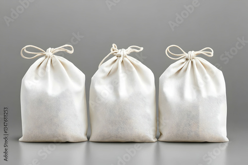 A set of three eco-friendly cotton bags in white, isolated on a transparent background, perfect for mockups or design projects. 40k, , high resolution