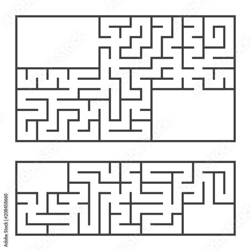 A set of two rectangular mazes with an entrance and an exit. Simple flat vector illustration isolated on white background. With a place for your image