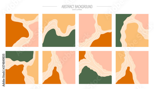 A set of various abstract backgrounds. Hand-drawn various shapes and doodle objects. Modern trendy vector illustration. Each background is isolated. Pastel shades. For bloggers and Instagram