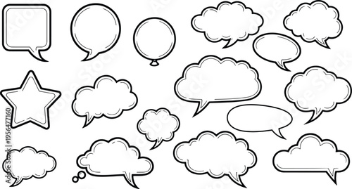 set, bundle, vector, line, art, silhouette, speech, bubble, cloud, chat, dialogue, balloon, star, icon, illustration, graphic, design, element, symbol, communication, conversation, text, message, thought, comment, feedback, talk, quote, phrase, word, expression, emotion, feeling, simple, black, white, outline, shape, form, minimal, modern, clean, artwork