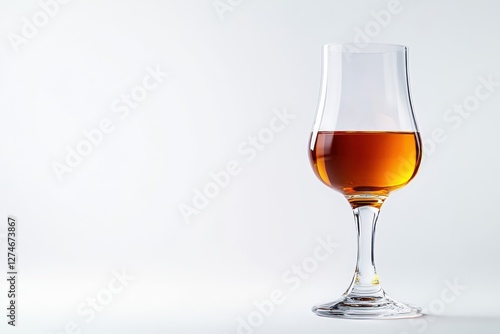 A shimmering glass of amber liquid capturing elegance in a minimalist setting isolated on transparent background
