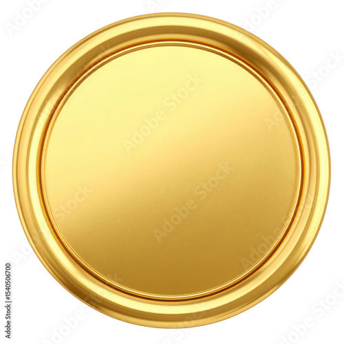 A shiny, circular gold medal with a smooth surface and a slightly raised outer edge.