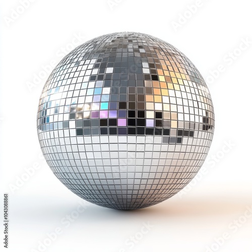 A shiny disco ball reflecting light, isolated on white background, perfect for party, dance, or festive decoration themes