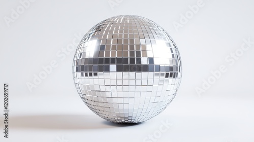 A shiny disco ball reflecting light, perfect for parties and events, set against a simple white background.