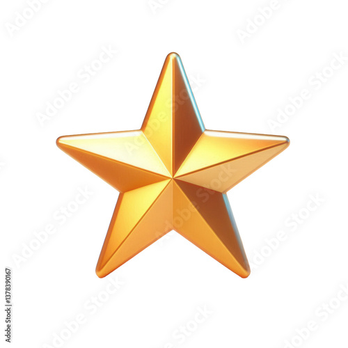 A shiny, gold, five-pointed star is tilted slightly to the right. transparent background