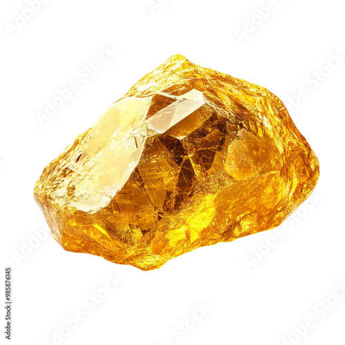 A shiny gold nugget, hyper-realistic, bright yellow and metallic textures, isolated on white background.
