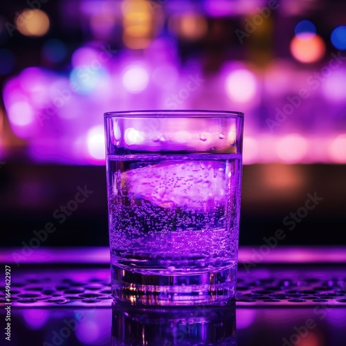 drink, glasses, cocktail, ice, bubbly, bar, night, purple, light, blurred, background, atmosphere, nightlife, liqueur, tonic, soda, cool, refreshing, clear, cold, ice cube, illuminated, vibrant, colourful, energy, party, club, toned, sharpened, closeup, modern, texture, metal, pattern, lighting, dark, ambience, smooth, subtile, high-coloured, bubble, delicious, sparkling, crisp, refreshment, nightclub