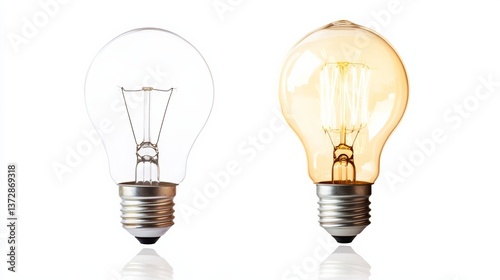 A side-by-side comparison of traditional incandescent bulbs and modern LED energy-saving bulbs, isolated on a clean white background,