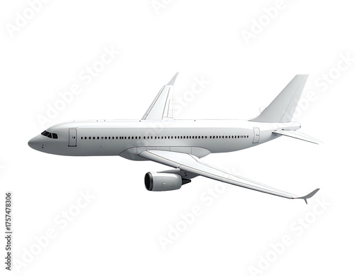 A side-view illustration of a white passenger airplane against a black background