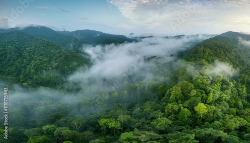 "A Silent Wilderness: Aerial View of a Jungle Enshrouded in Mist"