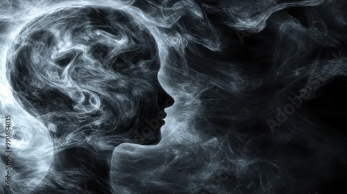 A silhouette of a head formed by swirling smoke, representing thoughts and introspection.