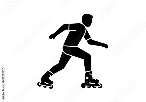 rollerblade, silhouette, person, sk8, sport, activity, exercise, fitness, roller, blade, inline, speed, motion, balance, wheel, recreation, athlete, moving, equipment, health, lifestyle, training, active, rollerblading, skater, male, man, wear, clothing, shirt, short, leg, arm, body, human, figure, icon, symbol, graphic, design, illustration, vector, clip art, art, drawing, image, white