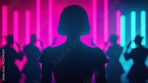 silhouette, neon, light, colours, vibrant, rythm, visual, nightlife, excitement, surreal, unique, stage, performance, mood, dynamic, innovation, inspiration, trend, dance, atmosphere, glow, stylish, creativity, music, aesthetic, elegance, entertainment, expression, artistic, imagery, contrast, shadow, striking, ambience, captivating, energy, optical, fun, spectacle, technology, modern, art, design, fashion, celebration, beauty, background, culture