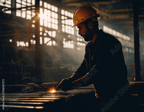 A silhouette of professional engineer construction electrician working in a factory, worker with helmet, electrical worker in action --ar 16:9