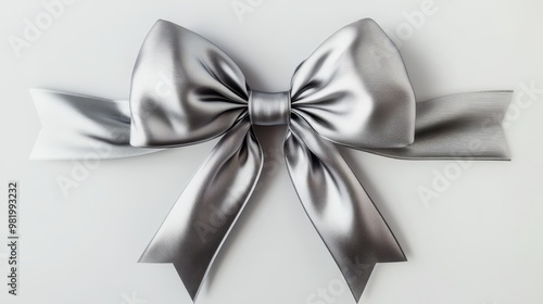 A silver ribbon bow is shown on a white background