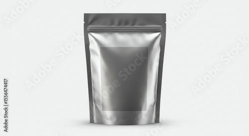 A silver stand-up pouch with a zipper seal, isolated against a white background.