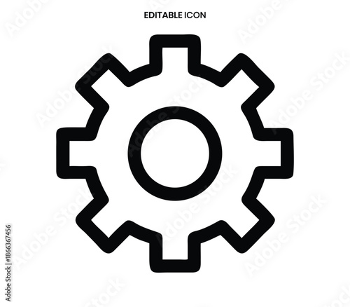 gear, icon, setting, cog, mechanism, engineering, technical, process, system, automation, control, option, configuration, adjustment, maintenance, repair, machine, industrial, technology, outline, line, black, white, symbol, graphic, illustration, design, vector, editable, modern, simple, minimalist, concept, interface, operation, worked