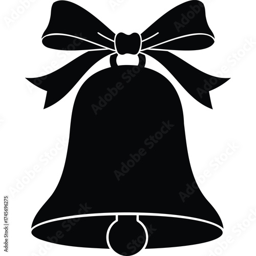 bell, bow, silhouette, black, white, isolated, design, art, simple, christmas, holiday, decoration, vector, graphic, clip art, illustration, symbol, icon, element, ribbon, shape, outline, drawing, vintage, classic, retro, elegant, celebration, seasonal, ornament, greeting, card, winter, new year, festive, template, background, decorative, flat, style, ribbon bow, white background