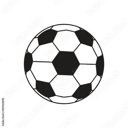 A simple, black-and-white soccer ball illustration against a white background