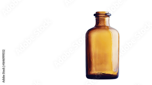A simple brown glass bottle stands upright against a white background, highlighting its smooth design and neutral tone
