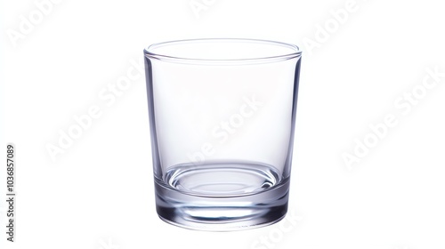 A simple clear glass with a modern design, perfect for serving beverages or as a decorative item in any setting.