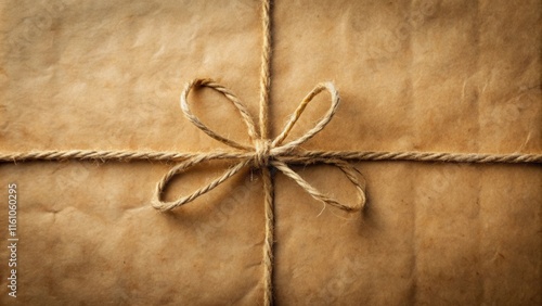 gift, brown paper, twine, bow, knot, package, present, rustic, vintage, simple, minimalist, natural, hand-made, wrapping, tied, textured, string, tied up, brown, cardboard box