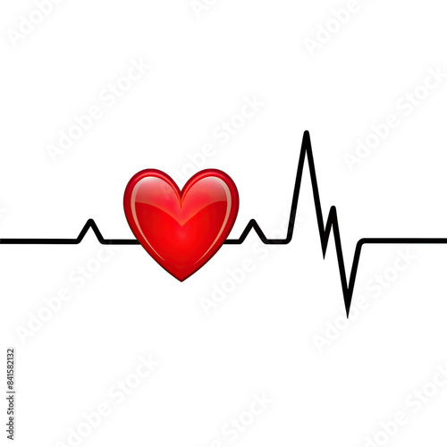 A simple graphic illustration of a red heart centered over a black EKG line wave. Generative AI