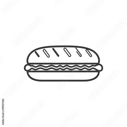food, sandwich, bread, loaf, bun, filling, outline, graphic, design, illustration, simple, minimal, monochrome, black, white, isolated, element, fast food, meal, snack, lunch, dinner, tasty, delicious, appetence, ravenous, eat, cookery, eatery, cafes, take-out, order, ingredient, shape, icon, flat, image, picture, style, logotype, label, symbol, representation, art, concept, line, drawing