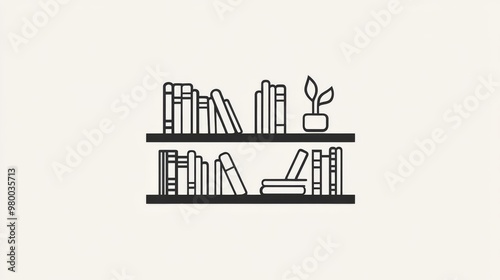 bookshelf, book, line, drawing, icon, black, white, solid, background, app, design, vector, illustration, minimal, graphic, simple, visual, digital, clean, style, modern, library, monochrome, decorative, layout, classic, elegant, minimalistic