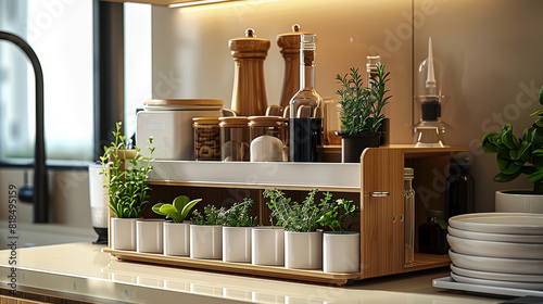 A simple multipurpose organizer in a modern kitchen. Generative AI.