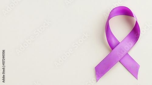 A simple purple awareness ribbon on a light background, symbolizing support for various causes like cancer, domestic violence, or mental health.
