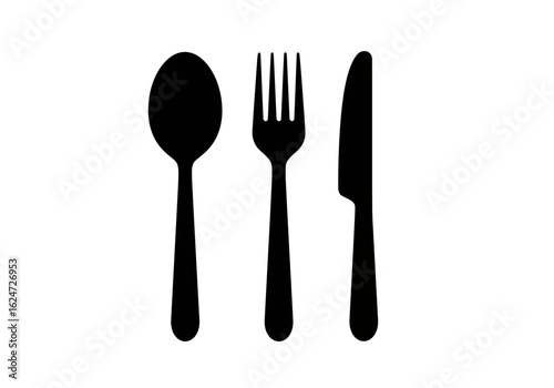 A Simple Silhouette Depicting Essential Utensils for Dining Including a Spoon A Fork And A Knife Presented Against A Plain White Background In A Clear And Minimalist Style