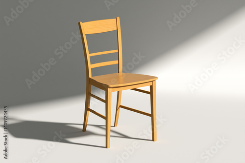 A simple wooden chair with a soft light in the background. This photo captures the chair's simplicity and elegance, perfect for creating a cozy and welcoming atmosphere.