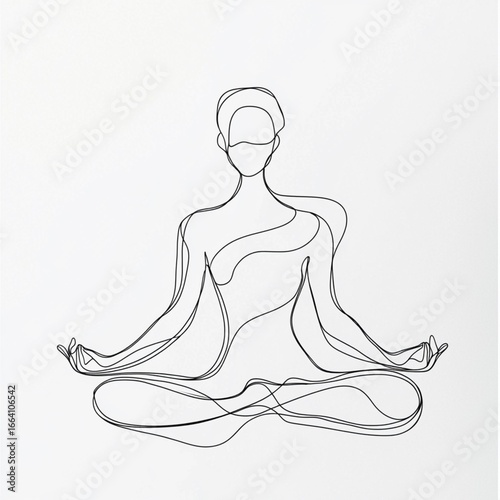 A single continuous line drawing of a meditating person, minimalist spiritual art, soft flow, black and white contrast --quality