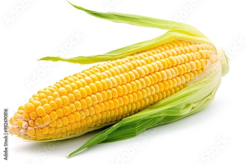 A single ear of corn on a clean and simple white background, perfect for food-related illustrations or decorative designs